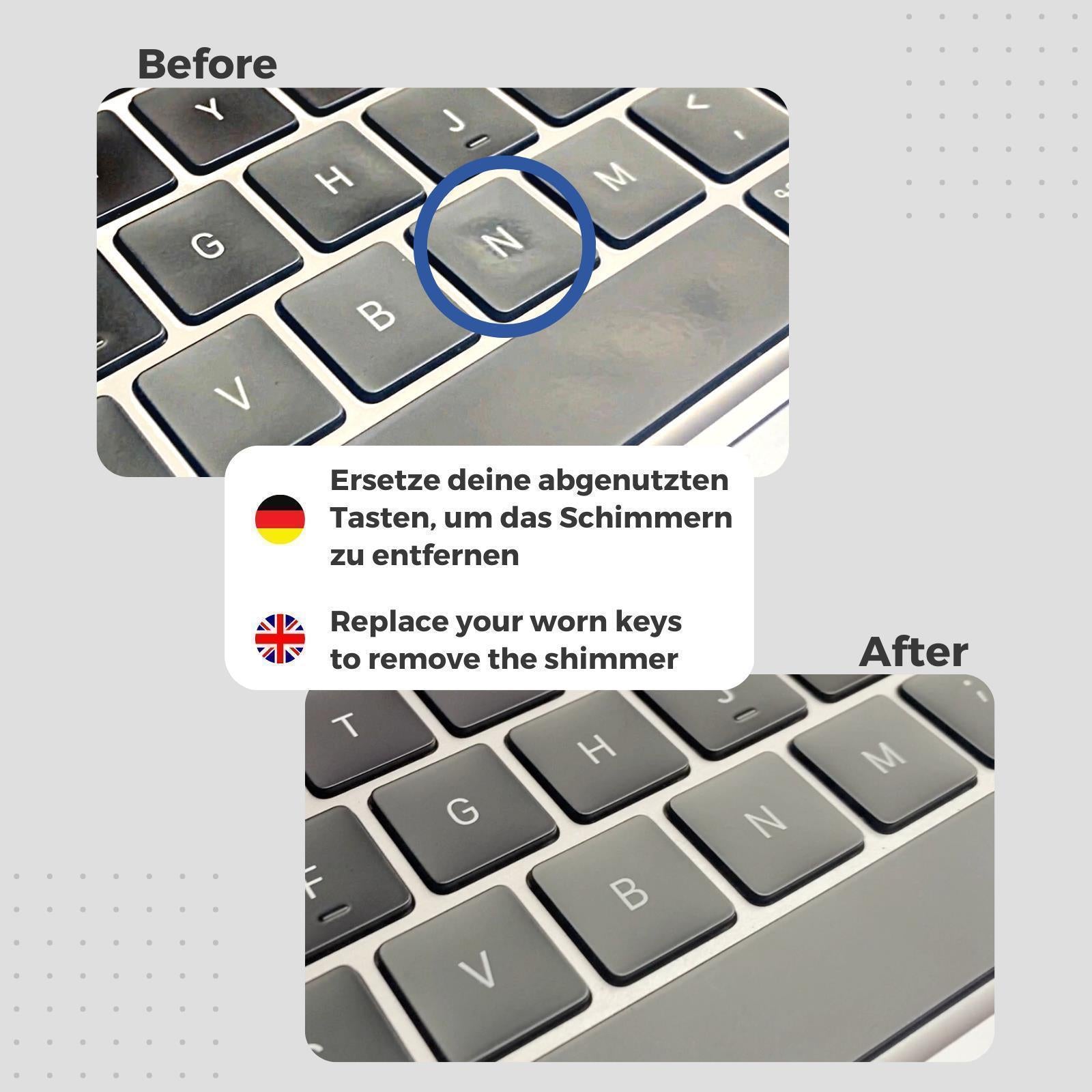 ✨ If you've damaged a key, you can save yourself an expensive repair and continue using your device quickly. With new keys, your keyboard will not only look like new again, but it will also increase the resale value of your device. A neat appearance is important if you use your MacBook for business and want to maintain a professional appearance in front of clients.